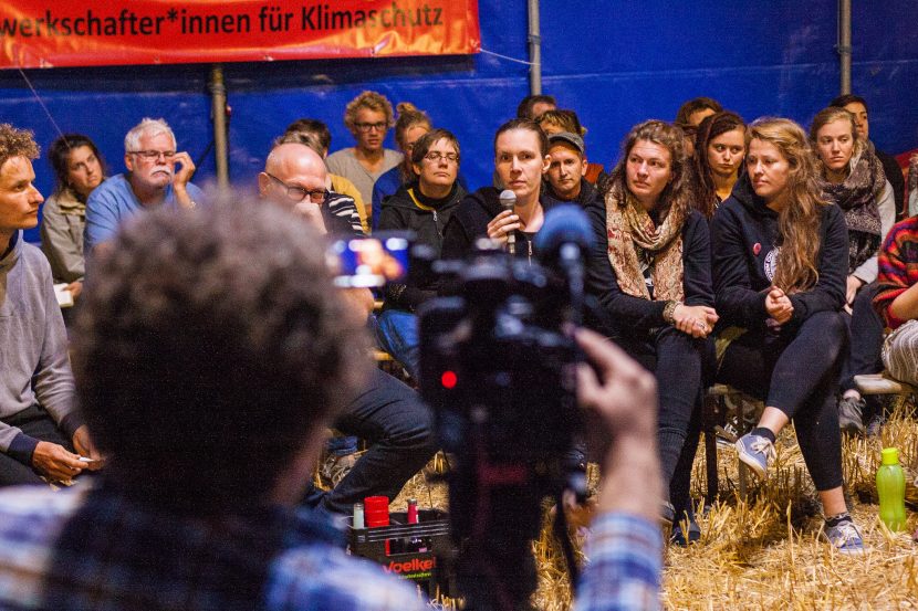 Auf dem Camp hatten wir eine tolle Diskussion zur zukünftigen Entwicklung des Rheinlands, u.a. mit der Bergbau-Gewerkschaft IG BCE sowie Anwohner*innen, denen die Abbaggerung droht. > Ihr findet den vollständigen Audio-Mitschnitt hier.